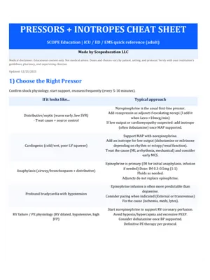 Shock + Pressors Cheat Sheets