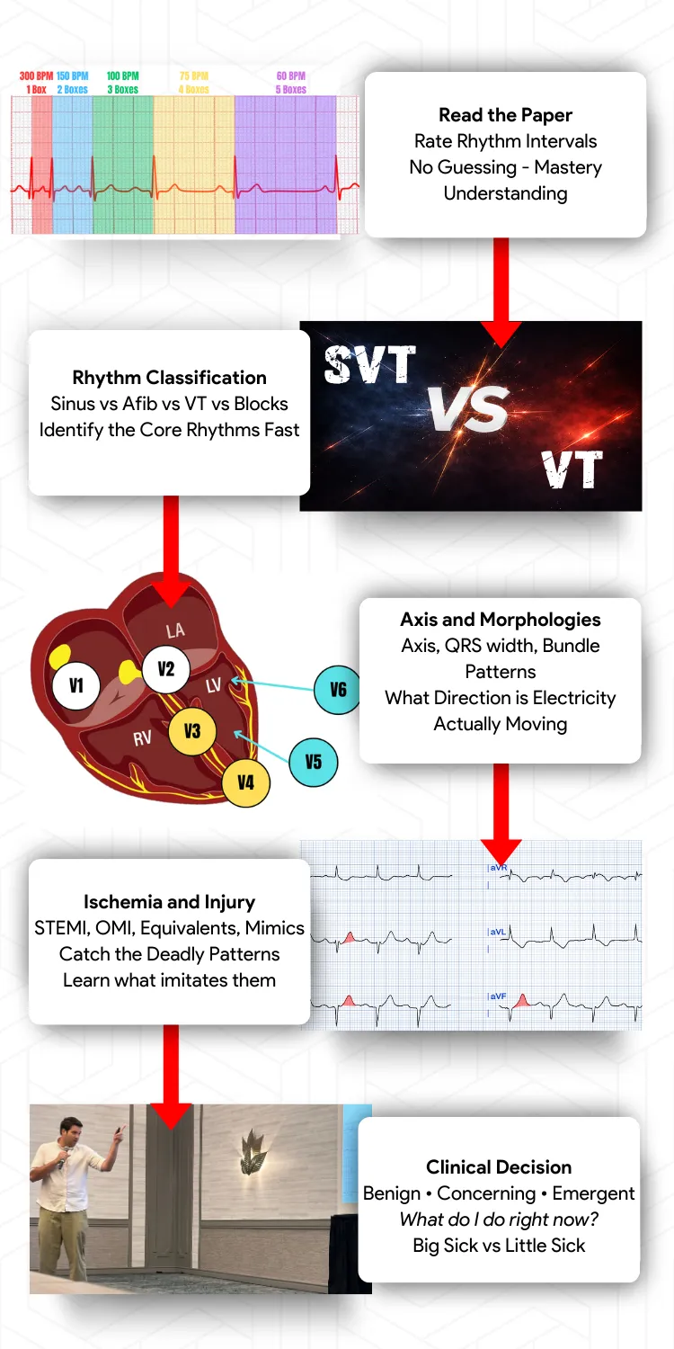 You want to learn how to interpret 12-lead ECGs faster and with confidence - without memorizing endless rules